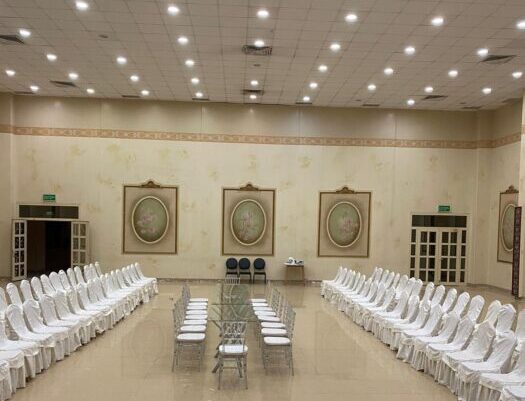• نعمل كذلك على توفير مساحات مريحة للاستقبال والاستراحة، إضافة إلى أماكن مخصصة للخدمات الأساسية لتسهيل حركة الضيوف داخل القاعة.